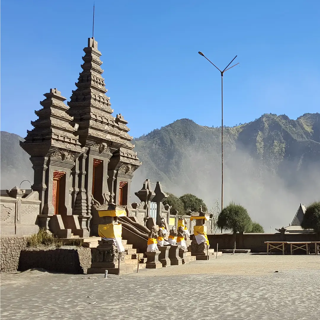 Pura sakral umat Hindu Tengger yang berdiri di tengah Lautan Pasir yang ikonik.
